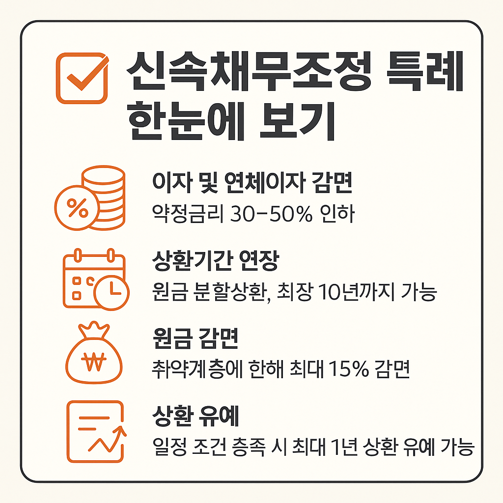 고금리 시대, 대출 상환이 어려워 단기 연체로 이어지는 취약차주가 늘고 있습니다. 이를 방지하기 위해 금융위원회와 신용회복위원회는 신속채무조정 특례 제도를 운영 중이며, 2025년 12월 말까지 연장되었습니다. 이번 글에서는 지원대상, 조건, 혜택, 신청 방법을 한눈에 정리합니다.