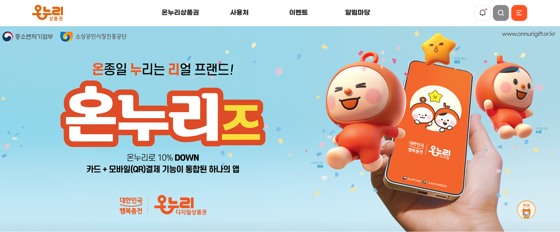 온누리상품권은 중소벤처기업부가 발행하는 전통시장 활성화용 상품권으로,