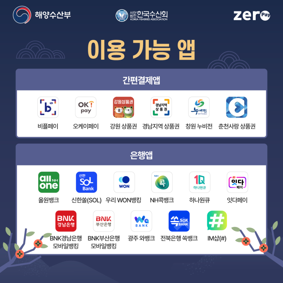 | 사용처 | 제로페이 가맹 국산 수산물 판매처 |
