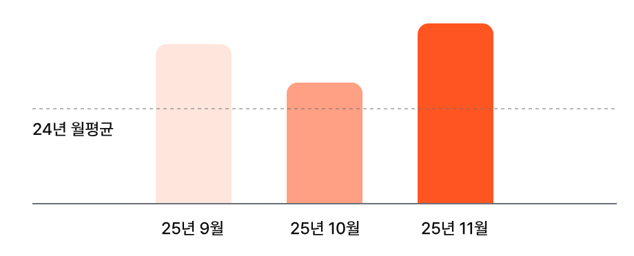 2024년 월평균 카드 사용액보다 2025년 9~11월 소비액이 증가한 경우,