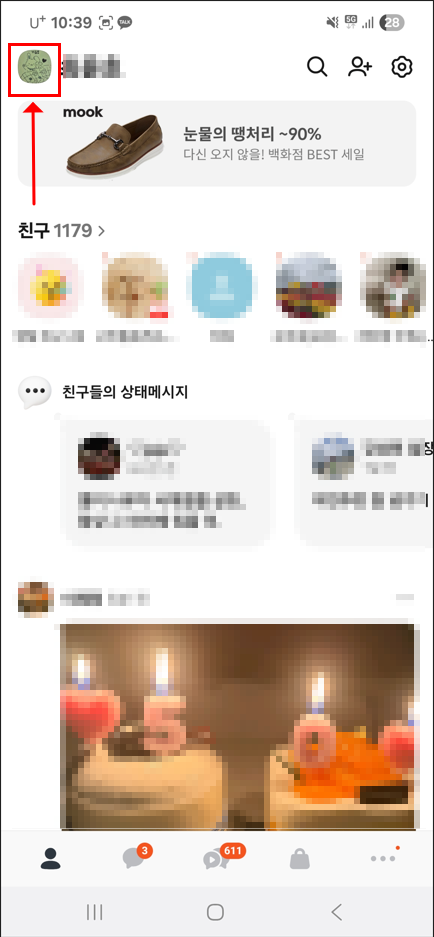 내가 프로필 사진, 배경화면, 상태 메시지를 바꾸기만 해도 친구 피드 최상단에 자동으로 노출됩니다.