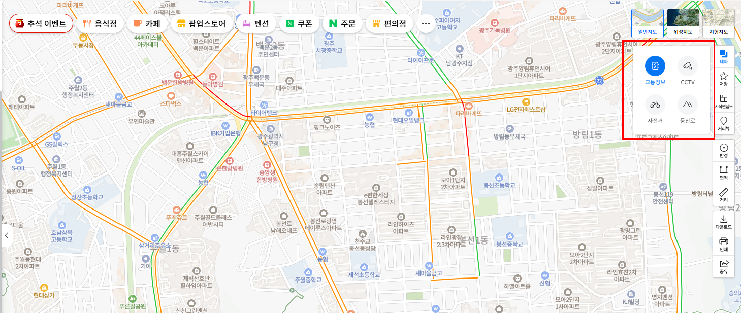 2. 네이버 지도 – 실시간 교통 레이어