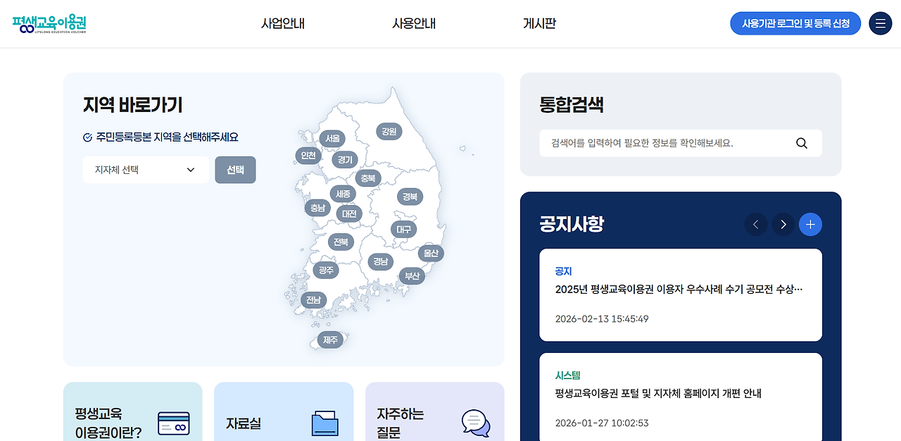 - 평생교육바우처 신청기간: [2026년 1월 중순 예정 - 공고문 확인 필수]